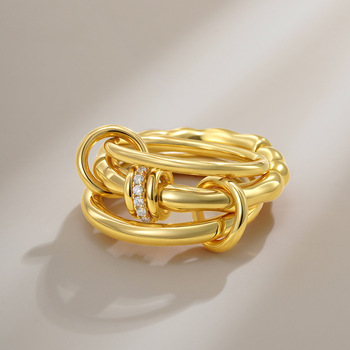 Anello di zircone Micro-intarsiato di lusso impilato triplo anello artiglio tecnologia 18K oro stile alla moda