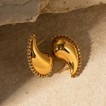 Orecchino a goccia in oro placcato in acciaio inox Chunky squisita catena di zirconi con catena ad acqua orecchini a goccia per le donne gioielli impermeabili