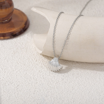 Collana con catena di clavicola alla moda da donna a ventaglio con Design a conchiglia vuota a forma di ventaglio, accento di zircone unico